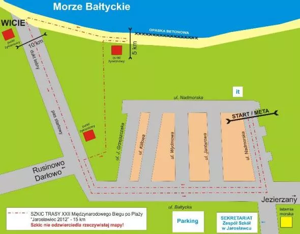Samorządowcy pobiegną w Jarosławcu na 2000 m, dzieci na 120 m (już ponad 400 zgłoszeń!), młodzież na dystansach od 500 do 2000 m, a pogranicznicy w biegu głównym na 15 km, wraz z krajową czołówką biegaczy i wszystkimi chętnymi amatorami. Jak mówi dyrektor biegu Adam Drapała, trasa, mimo że relatywnie krotka i płaska, będzie sporym wyzwaniem dla biegaczy. ? Piaszczysta nawierzchnia, która ciągnąć się będzie na dystansie około 7 kilometrów, będzie wymagała żelaznej kondycji od zawodników. Ważny będzie też dobór obuwia, szczególnie, że na trasie biegacze zetkną się również ze ściółką leśną i asfaltem - opisuje.