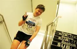 Dwie tury po mojej, wystartowała moja koleżanka klubowa Agata. Chory kręgosłup uniemożliwił jej ściganie się. Nie mniej dala popis hartu ducha pokonując schody szybkim równym tempem i bez zadyszki minęła linię mety (widziałam na własne oczy). Po kilku minutach mierzenia wzrokiem aż po horyzont, zjeżdżamy na parter. I to już koniec. Nie było nas w rundzie finałowej. Ale nasz występ i tak uważam za udany.