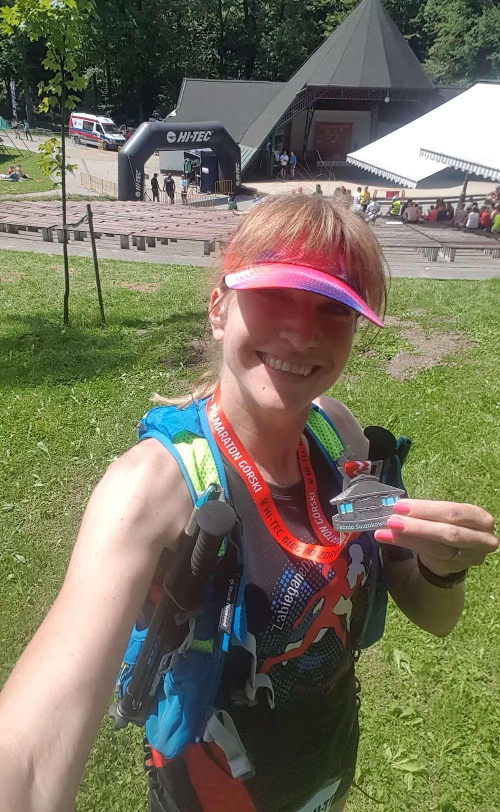 Za metą czekał nas, oprócz ciekawego medalu i butelki wody, ciepły posiłek (smaczny makaron z dwoma rodzajami sosów), losowanie nagród – m. in. bidony, plecaki, a także pakiety pobytowe oraz punkt masażu. Wszędzie biegaczom towarzyszyła przyjazna atmosfera. Trasa była bardzo dobrze oznaczona, taśmami i strzałkami, w newralgicznych miejscach stali wolontariusze. Organizatorzy bardzo życzliwi i pomocni. Na punktach nie zabrakło niczego nawet dla końca stawki. Jako postulat na następny raz tylko zgłoszę, żeby puścić nas przez Klimczok!
