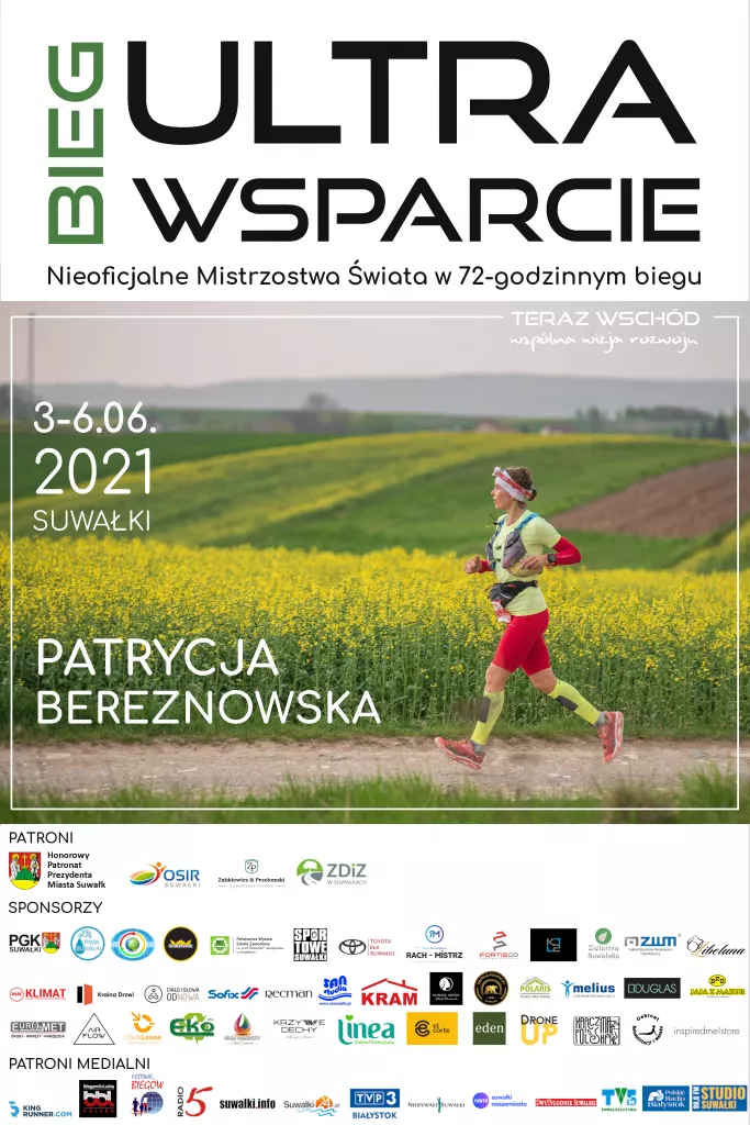 Co przychodzi Wam na myśl, gdy usłyszycie o mieście Suwałki? Zwykle Suwałki kojarzone są z polskim biegunem zimna albo krainą gdzieś na końcu świata. Ale wkrótce może to się zmienić, a to wszystko za sprawą Nieoficjalnych Mistrzostw Świata w 72-godzinnym biegu z udziałem Pani Patrycji Bereznowskiej. W dniach 3-6 czerwca zapraszamy do udziału w wydarzeniu, które z pewnością zapisze się w kartach historii tego wyjątkowego miasta.