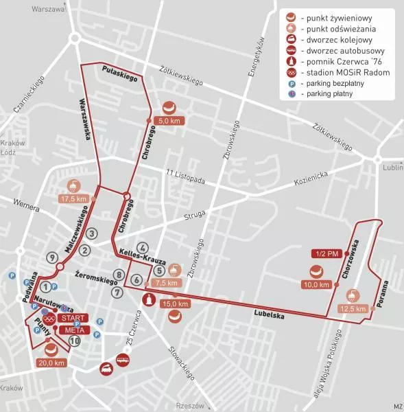 Po względem sportowym impreza zapowiada się równie ciekawie. Bieg główny na tradycyjnym dystansie 21,097 km wystartuje o godz. 9:00 na ul. Narutowicza, na wysokości stadionu MOSiR. Na samym stadionie zlokalizowana będzie meta. Sama trasa poprowadzi zawodników ulicami: Narutowicza, Podwalną, Malczewskiego, Chrobrego, Pułaskiego, Warszawską, Kelles-Krauza, Lubelską, Poranną i Chorzowską. Trasa uzyskała atest PZLA, co podkreśla dążenia organizatorów do przeprowadzenia zawodów w profesjonalny i atrakcyjny sposób.