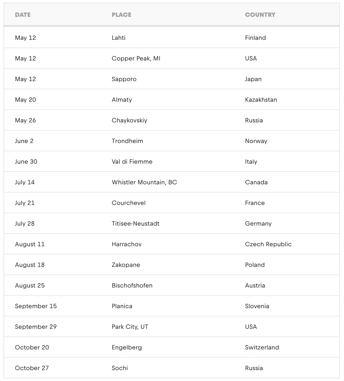 Kalendarz cyklu Red Bull 400 na 2018 r.: