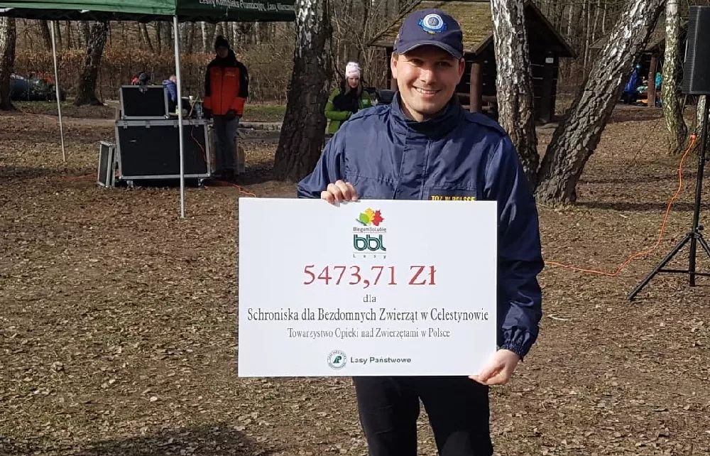W tym roku organizatorzy wprowadzili opłatę startową. Symboliczne 11 złotych nie idzie jednak do leśnej kasy, a zasila konto schroniska dla bezdomnych zwierząt w Celestynowie koło Otwocka. Kolejny świetny pomysł! Dzieki temu przedstawiciel Towarzystwa Opieki nad Zwierzętami mógł po biegu pochwalić się okazałym czekiem na blisko 5,5 tys. pln!