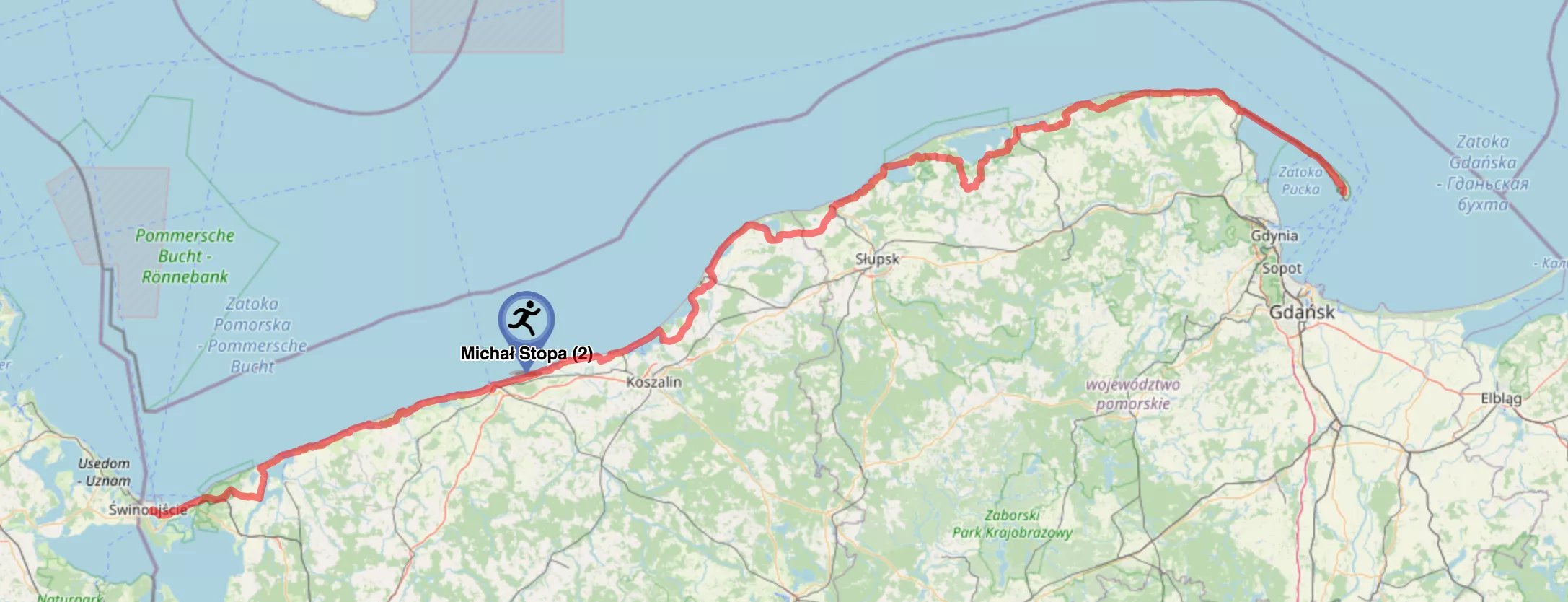 Michał ruszył na trasę w poniedziałek 13 lipca z dworca PKP w Świnoujściu, w kierunku Helu trasą R10. Pokonał już 105 km (plan na dziś to 50 km). Aktualnie Michał znajduje się na wysokości lotniska Kołobrzeg Bagicz. Jego poczynania można śledzić TUTAJ.
