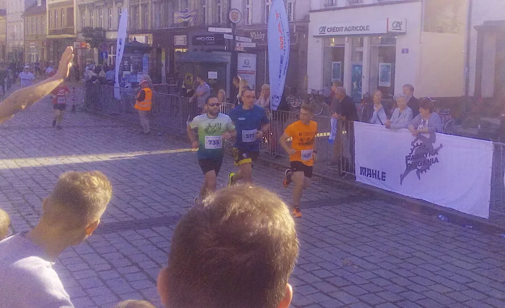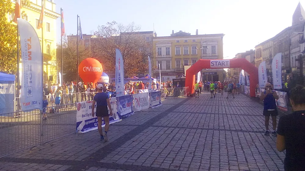 Do przebiegnięcia mieliśmy dwie pętle po 5 km, prowadzące ulicami miasta. Start i metę usytuowano na rynku, bo gdzie indziej. Serce miasta tętniące w sercach dumnych ostrowian pozwoliło przyjezdnym doświadczyć swego bicia.