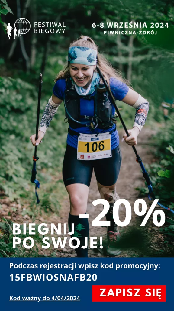 Początek wiosny oznacza, że nie mogło również zabraknąć specjalnej promocji! Tylko do 4 kwietnia zarejestrujecie się taniej o 20 procent! Dodajmy, że zniżka dotyczy wszystkich biegów. Wystarczy użyć kodu - 15FBWIOSNAFB20. Tego po prostu nie można przegapić!