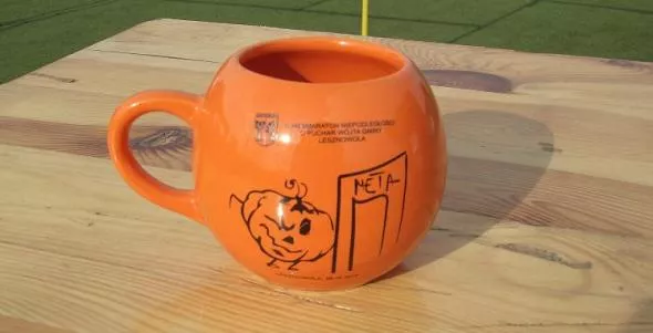 ... oraz pękaty, dyniowy kubek – od dzisiaj mój ulubiony. Po biegu można było się regenerować, jedząc krem i zupę – nie muszę chyba wyjaśniać, co było ich podstawowym składnikiem.
