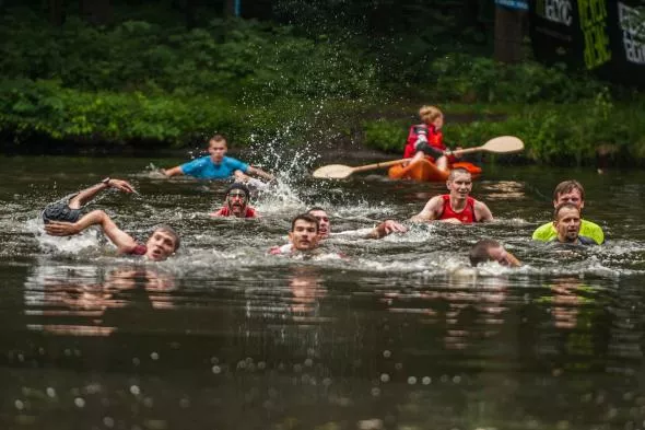 Zanim na dobre rozgorzała walka z wymagającą trasą przeprawówki, całe miasto skąpało się w strugach deszczu. Śmiałkowie nic sobie jednak z tego nie robili, wszak z tej potyczki i tak każdy musiał wyjść mokry i zmęczony. I zadowolony.