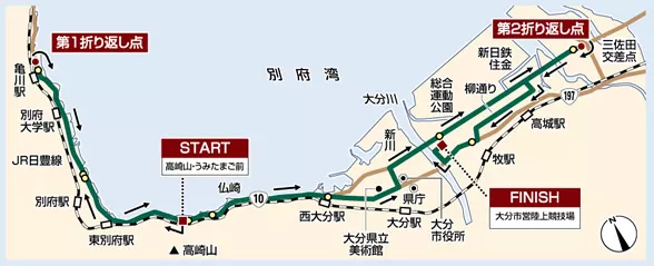 Trasa maratonu łączny dwa miasta Beppu i Oita, które położone są na wyspie Kyushu.
