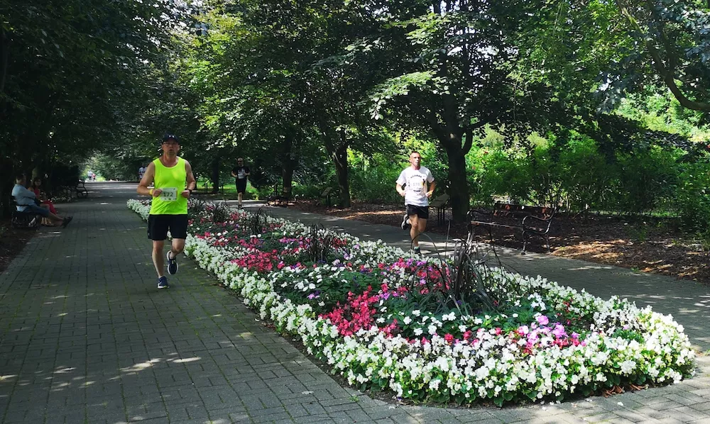 Stawkę ścigającą się na 5-kilometrowej trasie, z racji ograniczonej przestrzeni, podzielono na 3 tury startowe i było to naprawdę dobre rozwiązanie - nie było ścisku w tych niekiedy dość wąskich alejkach, z raz lepszą a raz gorszą nawierzchnią.