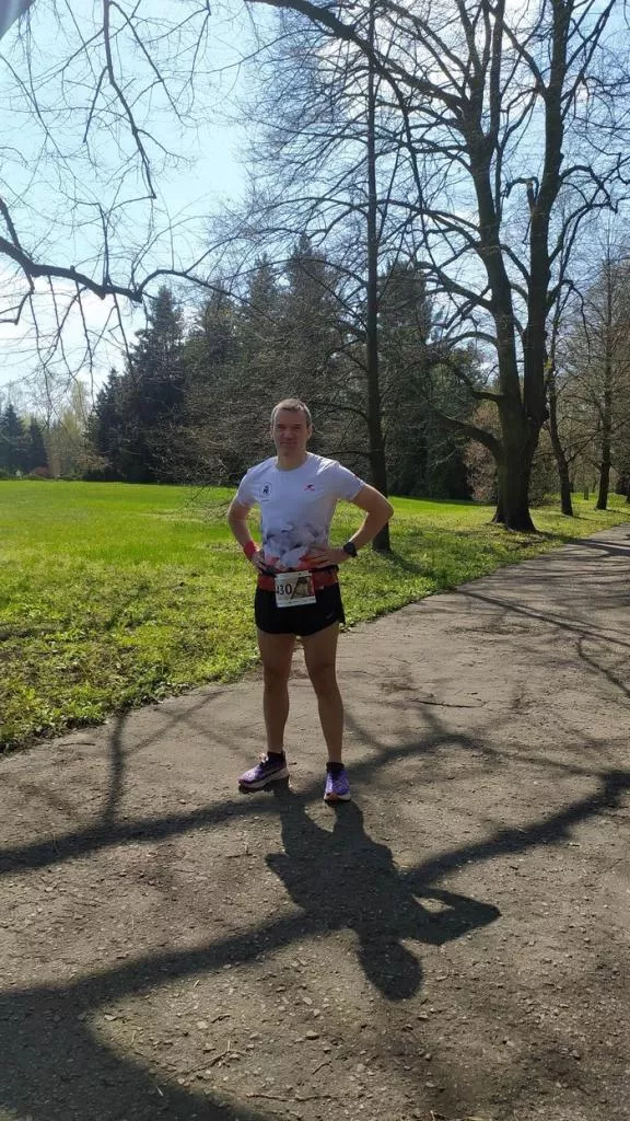 Drugi kilometr, trzeci. Samotni bieg. Sił coraz mniej. 7 pozycja. Tylko pilnowanie oby nikt nie dogonił. Nagłe z tyłu krzyk "Nie tędy!" Ale lipa. Źle pobiegłem. Zawracam. Tracę czas. Przecież pierwsze okrążenie było dobre. A na drugim dałem ciała. I kosztowało mnie to dwie pozycję w OPEN i chyba tak samo w kategorii wiekowej. Bo widzę dwóch trzydziestolatków właśnie z różnicą tych 10 sekund przede mną. Przykro. A już niby tyle razy biegłem tą trasą..