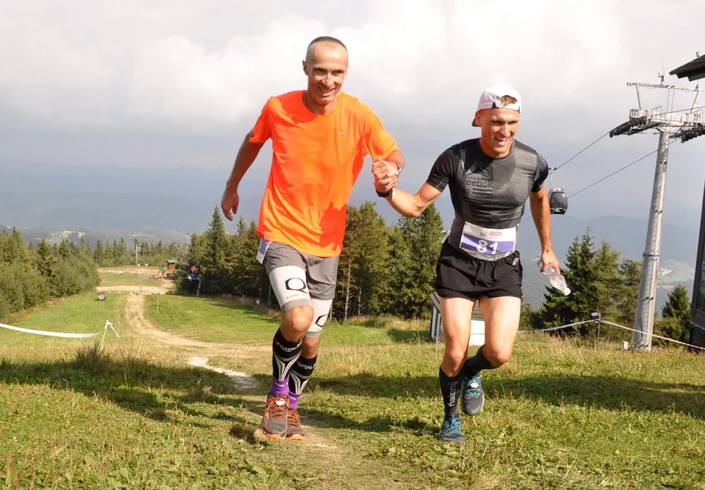 - Pierwszy kilometr biegliśmy rywalizując. Artur prowadził, ja za nim, ale przy wylocie czarnego szlaku doszedłem go i wpadłem na pomysł, że skończymy razem, bo obaj jesteśmy zwycięzcami – wyjaśnił Radosław Ślaski. Artur Jendrych dodał: