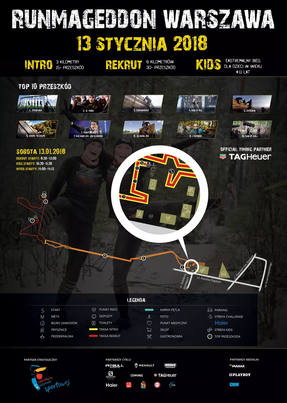 Niezwykle trudna do pokonania w pojedynkę będzie ściana o wysokości 3 metrów. Aby ją przejść, większość uczestników będzie musiała sobie nawzajem pomagać. Poza tym wszyscy planujący start w sobotę już dzisiaj powinni zgłębiać wiedzę na temat Michaela Jacksona, bo to właśnie on będzie głównym bohaterem przeszkody mentalnej. Ze względu na specyfikę lokalizacji oraz porę roku tym razem trasa nie będzie prowadziła przez mokradła i rowy z wodą. Pojawi się za to Lodowa wybrana w głosowaniu przez samych uczestników na przeszkodę, która ma znaleźć się tuż przed metą.
