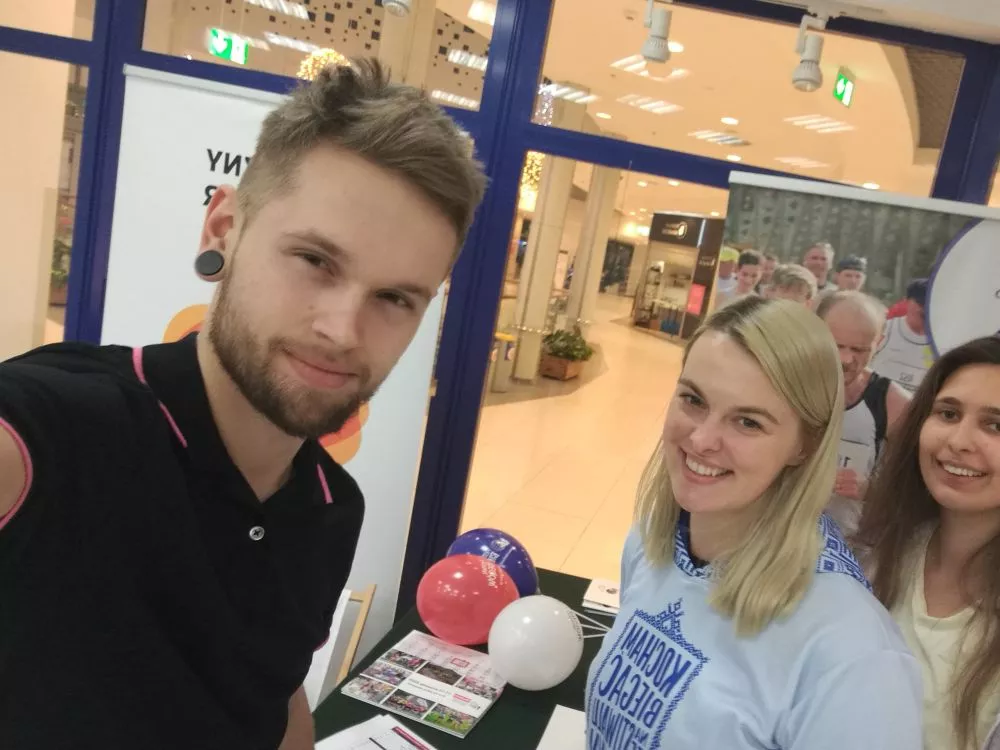 Po tym spotkaniu pojechałem po odbiór pakietu startowego w Galerii Bemowo, gdzie dołączyłem do festiwalowego stanowiska, na którym m. in. z Paulą zapisaliśmy kilkoro biegaczy na nasz Festiwal Biegowy.