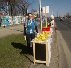 Niestety, stan mojego zdrowia i kontuzja uniemożliwiła mi bezpośredni start w tej imprezie. Niewiele myśląc, zgłosiłam się jako wolontariuszka do obsługi punktu żywieniowego na 10. km. Nie mogłam sobie, po prostu, wyobrazić, że mnie nie będzie w środku tego prawdziwego ?wulkanu? pozytywnej biegowej energii !! Czas leciał szybko: trzeba było przygotować dziesiątki kilogramów bananów, hektolitry wody w setkach kubków i niezliczone tabliczki czekolady- źródło prawdziwej maratońskiej mocy.