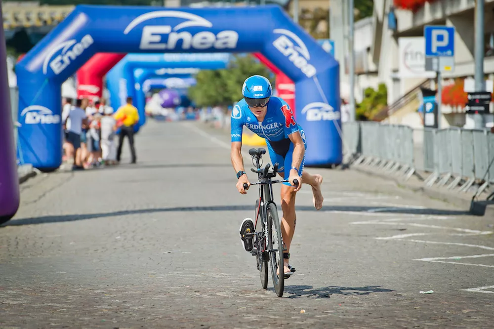 Wśród kobiet, Daniela Ryf od początku wyglądała, jakby miała w tym dniu do wykonania misję specjalną. Wyszła pierwsza z wody, z ponad 2-minutową przewagą nad rywalkami. Wszyscy jednak czekali na to, co Szwajcarka pokaże na etapie kolarskim, na którym w ostatnim czasie zupełnie „odjeżdża” swoim konkurentkom. Nie inaczej było tym razem – Ryf pokonała niełatwą, pofałdowaną, 90-kilometrową pętlę po Kaszubach ze średnią prędkością blisko 41 km/h i w strefie zmian T2 pojawiła się z przewagą ponad 18 minut nad Carfrae.