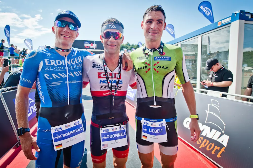 Obaj faworyci utrzymali podobne tempo na 90-kilometrowym etapie rowerowym i na ulice Gdyni O’Donnell wybiegł zaledwie pół minuty przed Frommholdem. Szybko jednak stało się jasne, że Niemiec raczej nie powtórzy swojego sukcesu sprzed trzech lat. Amerykanin, uważany za jednego z najmocniejszych triathlonistów na świecie, pokazał najwyższą klasę i z każdym kilometrem, przy głośnym dopingu gdyńskich kibiców powiększał swoją przewagę nad rywalami.
