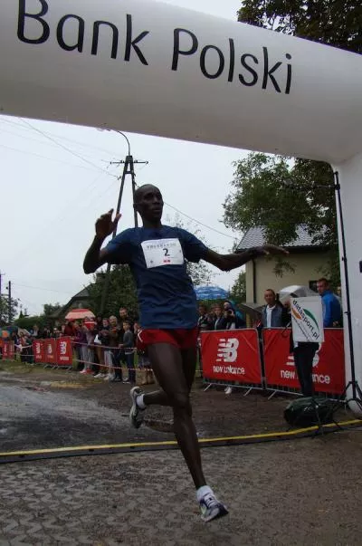 Od początku wyłoniła się grupa prowadząca bieg. Po 10 km na prowadzeniu znaleźli się Rop i Mwangi. Za nimi z pewną stratą biegł Olszewski, a po piętach deptał mu Tomasz Walerowicz. Po godzinie od rozpoczęcia biegu w okolicach mety padło hasło, że jeszcze tylko 2 kilometry zostają do mety liderowi. Jak się okazało, Rop uciekł swojemu koledze i samotnie mknął do Borzęcina Dużego. W rzeczy samej - zawodnik nabrał takiego tempa, że ustanowił nowy rekord trasy - 1:07:11. 40 sekund później finiszował Mwangi.