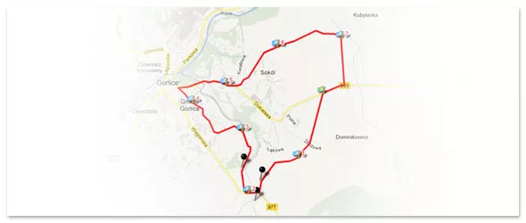Bieg możemy rozpocząć przy Parku Miejskim w Gorlicach, następnie lekkim podbiegiem biegniemy chodnikiem wzdłuż drogi asfaltowej w kierunku Dominikowic. Przy przedszkolu skręcamy na Rozbój i tu znów lekki podbieg, aż do lasku. Później już z górki do Kobylanki, gdzie obok szkoły specjalnej skręcamy w kierunku centrum Dominikowic. Na skrzyżowaniu skręcamy w lewo chodnikiem na Gorlice. Znów podbieg i po 300 metrach skręcamy na Sękową. Tu czekają nas lekkie wniesienia aż do kościoła w Sękowej, gdzie skręcamy w prawo na Gorlice i chodnikiem biegniemy w stronę osiedla Kochanowskiego. Tu juz po płaskim terenie wąską drogą asfaltową dobiegamy do ulicy Dukielskiej i skręcając w prawo dobiegamy po 500 m do Parku do miejsca rozpoczęcia biegu.
