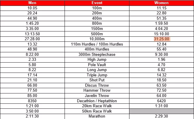 W biegu maratońskim kobiet wskaźnik IAAF wynosi 2:29:30. Wątpliwym jest, by krajowe minimum było jeszcze bardziej wyśrubowane. Bardziej prawdopodobne wydaje się obniżenie wymagań. Patrząc na statystyki, wymagany rezultat ostatni raz uzyskała Monika Stefanowicz.... w 2016 roku - 2:28:26. Dodajmy, że minimum IAAF do Rio roku wynosiło 2:42:00 - różnica jest więc spora. Nasz krajowy standard kwalifikacyjny wynosił wówczas 2:30:00.