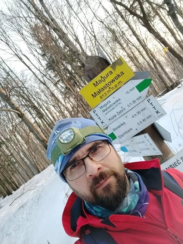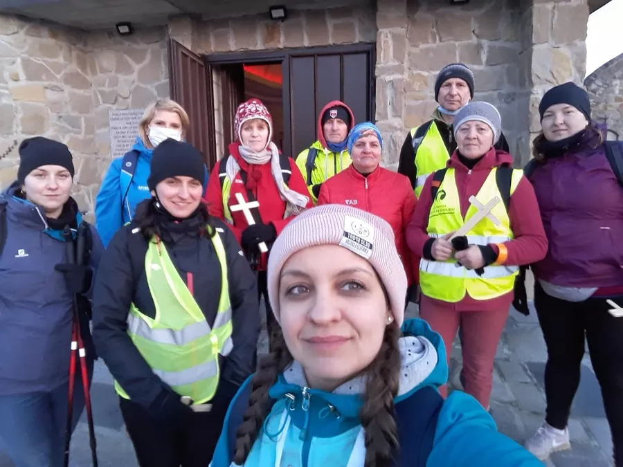 - Miałem plany w poprzednich latach wyruszyć na trasę EDK, ale zawsze coś wypadło. W tym roku się udało. Maszerowaliśmy mocną biegowo – turystyczną piątką z Eweliną, Anią, Michałem i Adrianem. Tempo marszu nadawały Ewelina z Anią. Trasa chociaż najkrótsza była bardzo wymagająca z licznymi stromymi podejściami i trudnymi zejściami. W częściach zalesionych nie zabrakło błota i śniegu. Udało się ją w zadumie i modlitwie pokonać w dość szybkim tempie, bo przed godziną czwartą byliśmy już na symbolicznej mecie, czyli Gorlickiej Golgocie i wyszło nam prawie 40 km nocnego marszu – opowiada Marek Podraza, Ambasador Festiwalu Biegowego i uczestnik EDK 2021