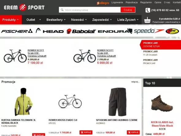 Sklep internetowy www.erem-sport.pl to szeroka oferta sprzętu sportowego uznanych marek. Szeroki wybór produktów i atrakcyjne ceny znajdą tu miłośnicy biegania, rowerów i rekreacji.