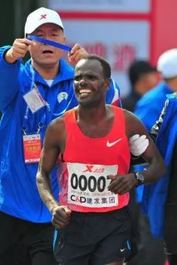 Etiopczyk zupełnie niespodziewanie objął prowadzenie, gdyż od 2010 r. w maratonie nie udało mu się zejść poniżej 2:11, a jego rekord życiowy (2:07:41) ustanowił dawno, bo w 2009r. Dwukrotnie ukończył maraton w Xiamen na drugiej pozycji, ale w ciągu ostatnich 2 lat plasował się zaledwie na 8 miejscu.