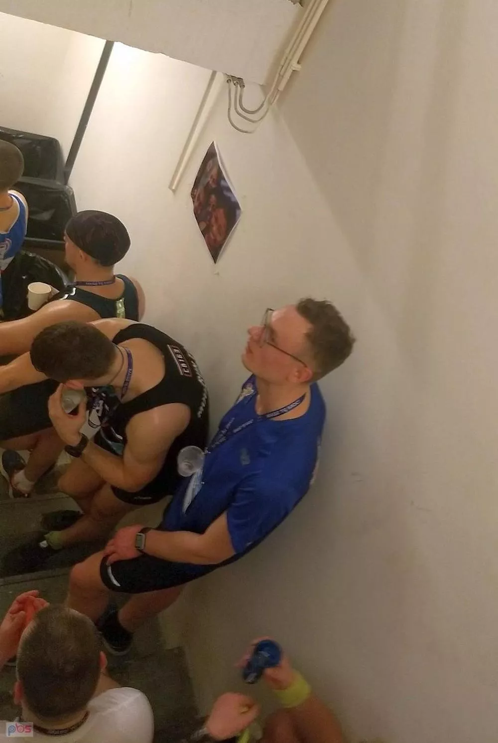 Startujemy w piwnicy, czy jak to ładniej nazywają organizatorzy na poziomie -1 :-) Na miejscu surowo i diabelnie zimno. Nie do końca wiem którędy będziemy biegli z windy na schody więc na czuja wybieram jakieś miejsce. Przychodzi Tereska i słusznie zauważa, ze tam zamarzniemy. Chwila trwa wybieranie innego miejsca, ostatecznie lądujemy prawie przy wejściu na schody.