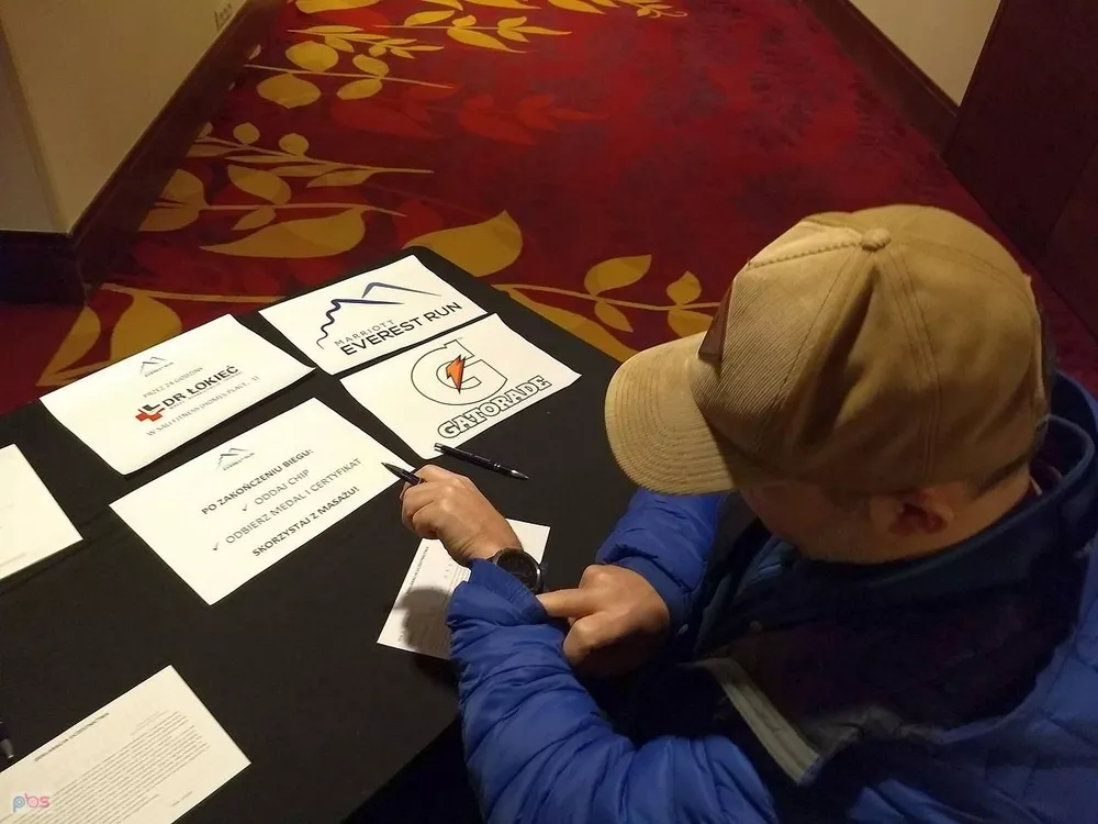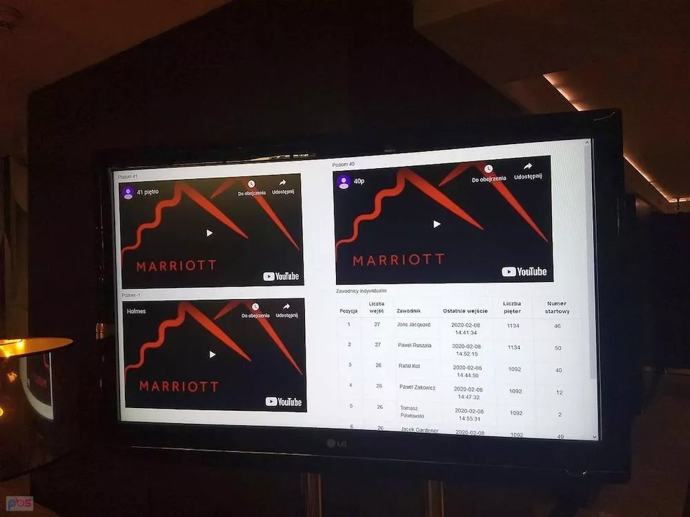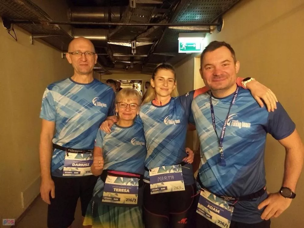 Biegnie z poziomu -1 na 41 piętro, czy łącznie 42 piętra i powrót windą. Kiedy zjedzie może biec kolejny raz, albo przekazać chipa, którym logujemy na górze zdobycie szczytu, kolejnej osobie ze sztafety. To od samych zawodników zależy jaką przyjmą strategię. My decydujemy się biec na zmianę, po naszym kapitanie ruszę ja, a potem Tereska i Marta.