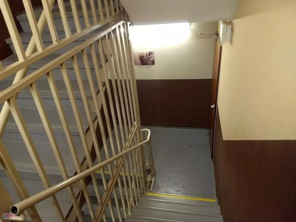 Klatka wąska, bez ani jednego okna, lekko klaustrofobiczna.