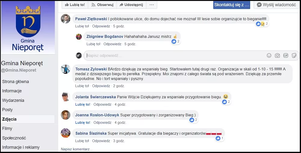 Na mecie na wszystkich czekały pożywny żurek, pyszne, świeżutkie, bo smażone na miejscu placki ziemniaczane, świetne drożdżówki i piękny, świąteczny tort, serwowane przez sponsorów imprezy. Niemal wszystkim uczestnikom i mieszkańcom gminy bieg bardzo się podobał. Niemal, bo... jak zwykle i wszędzie znaleźli się malkontenci, narzekający na czasowe zamknięcie kilku ulic i marzący o wyrzuceniu biegaczy do lasu. Ale takie głosy były odosobnione, wystarczy poczytać komentarze na fanpejdżu gminy Nieporęt...