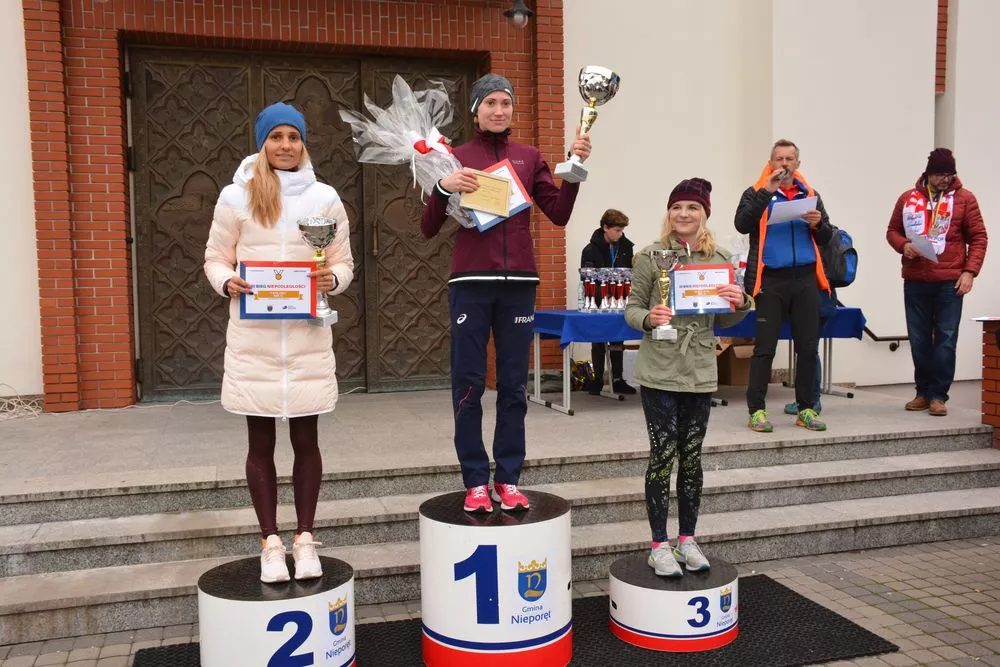W gronie kandydatów do podium w biegu na 10 km widzieliśmy młode biegowe małżeństwo z Warszawy, Dominika Goska i Dianę Dawidziuk-Gosk. Stojąc na starcie, Diana „odgrażała się” pół żartem, pół serio, że „dołoży” mężowi. I cel w pewnym sensie osiągnęła, bo choć przybiegła na metę ponad 3 minuty po Dominiku, stanęła na podium, podczas gdy małżonek był dopiero szósty i nie krył bardzo kwaśnej miny.