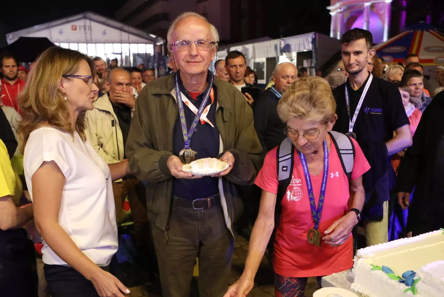 Zanim jednak można było spałaszować pyszności, Zarząd Fundacji Festiwal Biegów wyróżnił tych uczestników krynickich biegów, którzy są z impreza od samego początku. Ponad 30 biegaczy z całej Polski a także przedstawiciele partnerów i sponsorów od dekady zaangażowanych w imprezę otrzymało wyjątkowy, jubileuszowy medal.
