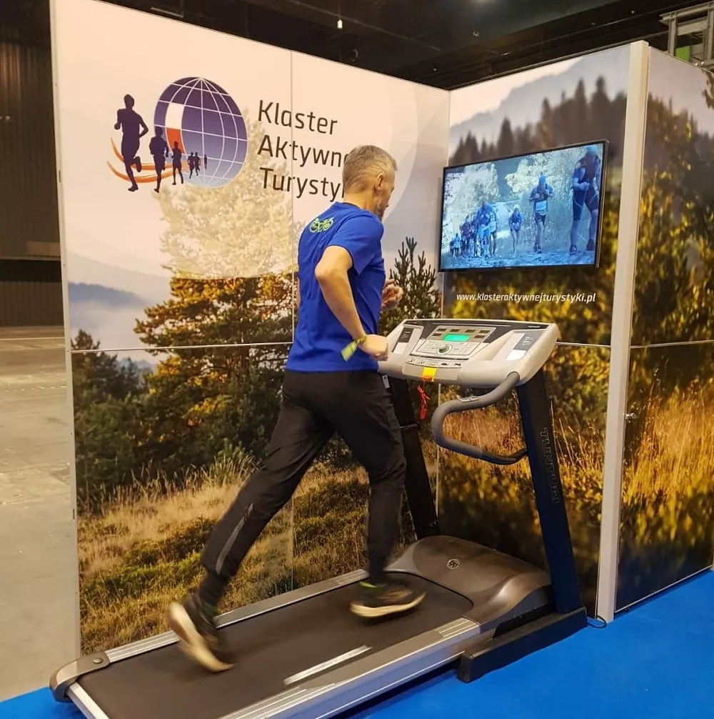 Będzie można zrobić rozgrzewkę lub sprawdzić swoje biegowe możliwości na profesjonalnej bieżni i obejrzeć filmy pokazujące piękno Krynicy i Beskidu Sądeckiego oraz niepowtarzalną atmosferę Festiwalu Biegowego.
