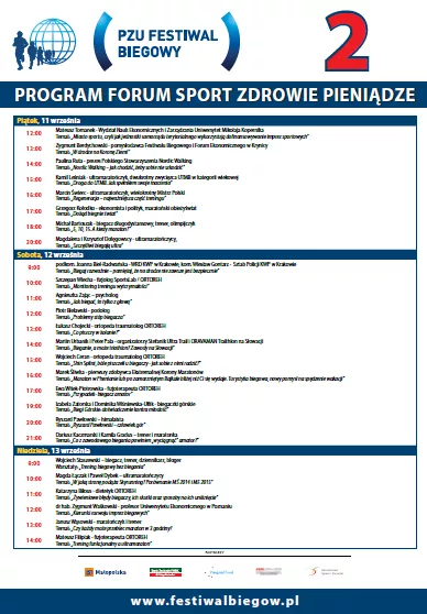 Forum rozpocznie się w piątek w południe i potrwa do niedzieli do godz. 15.00. Co godzinę w Domu Forum na krynickim deptaku odbywać się będą 60 min spotkania. Większość z nich dotyczyć ma rzeczy, które dotykają każdego biegacza na co dzień. Specjaliści z kliniki Ortoreh opowiedzą o zdrowiu, kontuzjach, diecie. W sobotę i niedzielę poprowadzą też konsultacje medyczne Będą też spotkania z psychologiem i … biegaczami ze Słowacji, którzy opowiedzą jak wyglądają zawody za naszą południową granicą. Serdecznie zapraszamy! Wstęp wolny.