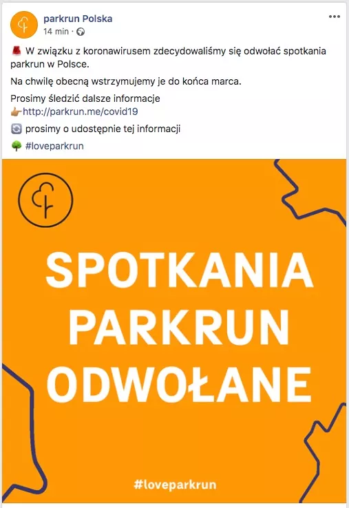 Do końca marca zawieszone zostaną biegi cyklu parkrun.