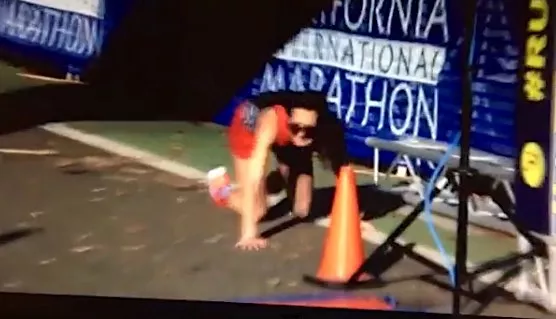 Los może nas nieźle przeczołgać w drodze po marzenia. Przekonała się o tym Amerykanka Hayley Sutter. I to dosłownie. Amerykanka upadła tuż przed metą maratonu w Sacramento. Zafiniszowała na czworaka, ambitnie walcząc o cenne sekundy, bo stawka była wysoka.