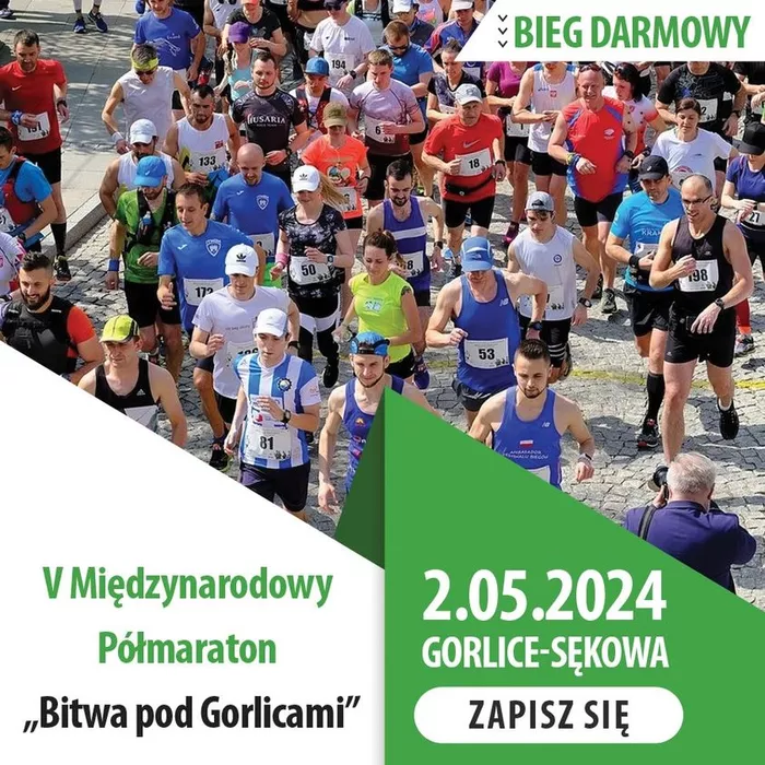 Już drugiego maja w Gorlicach odbędzie jubileuszowy V Międzynarodowy Półmaraton „Bitwa pod Gorlicami”. Trasa półmaratonu podobnie jak i w poprzednich latach będzie wiodła po urokliwych trasach z Gorlic przez Kobylankę, Dominikowice, Łysulę, Męcinę Małą, Męcinę Wielką do Sękowej.