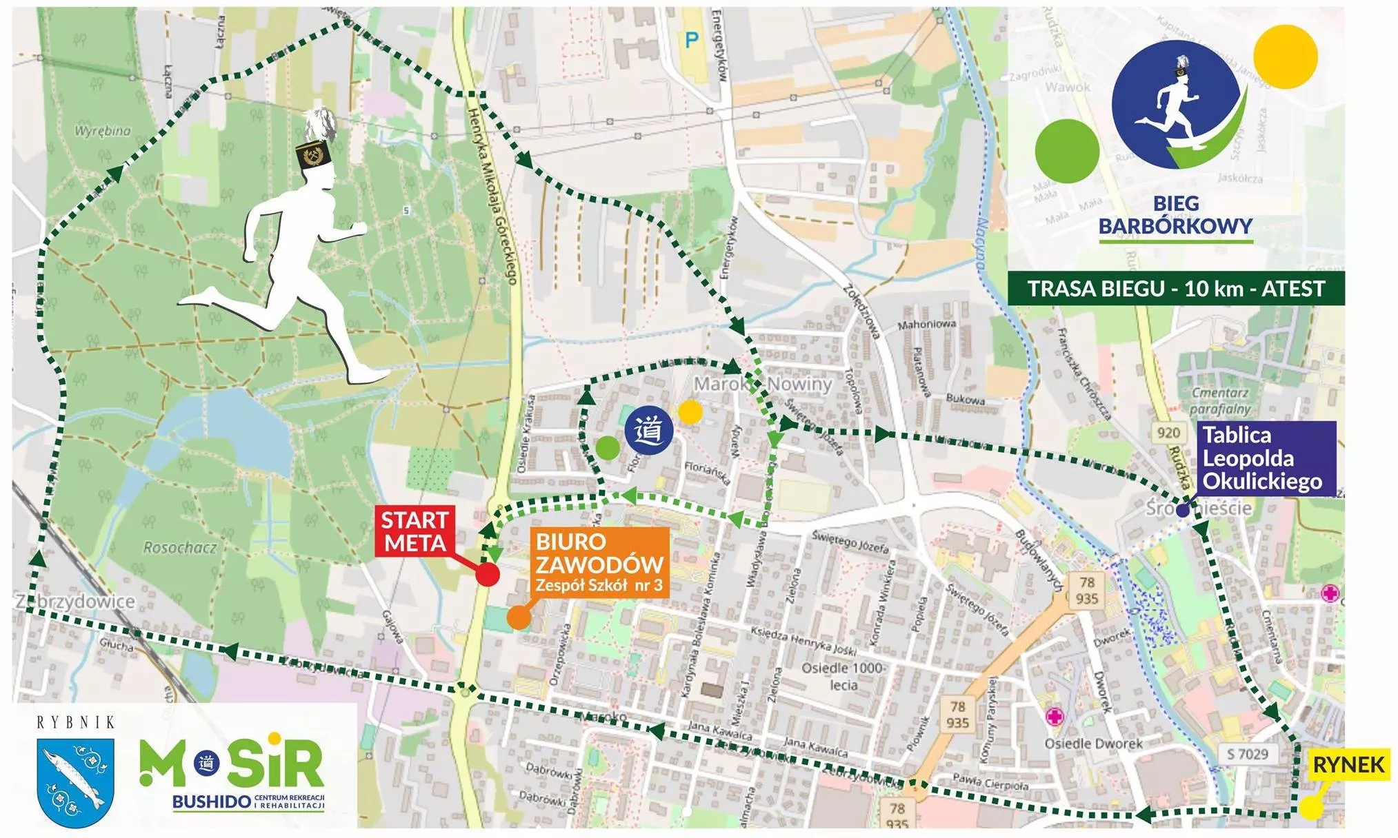 Bieg Barbórkowy to atestowana „dycha”. Trasa nie należy do najłatwiejszych, mimo to wielu biegaczy może pochwalić się swoją życiówką właśnie z Rybnika. Start i meta znajdują się na ul. Budowlanych obok boiska przy Zespole Szkół nr 3. Biuro zawodów będzie czynne od godz. 8:30 do godz. 11:00.