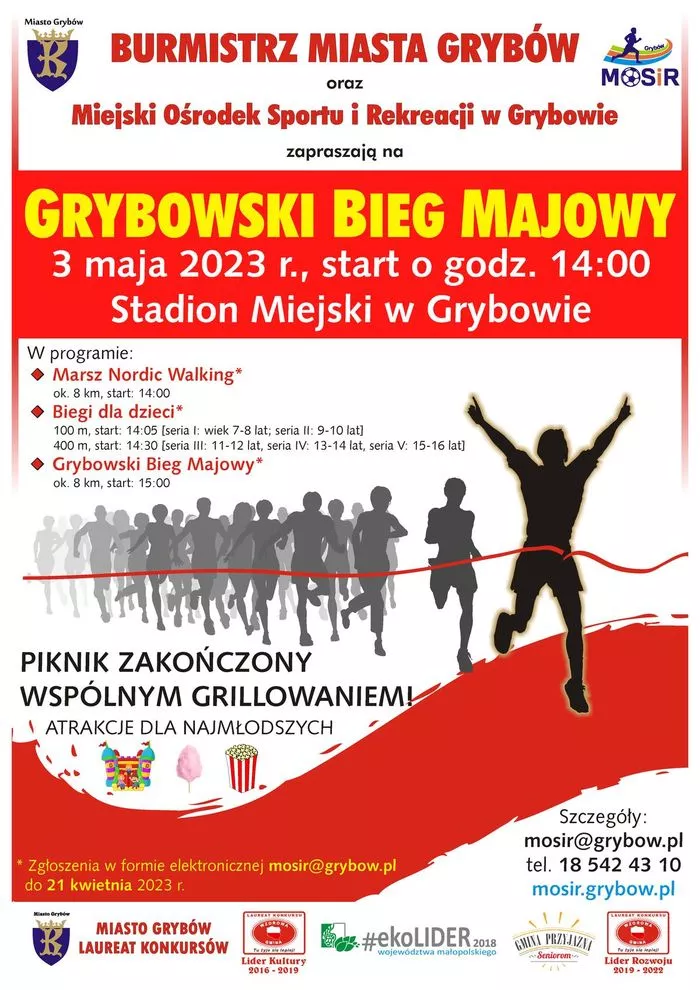 Burmistrz Miasta Grybów Paweł Fyda oraz Miejski Ośrodek Sportu i Rekreacji w Grybowie zapraszają do udziału w kolejnej edycji „Grybowskiego Biegu Majowego”.