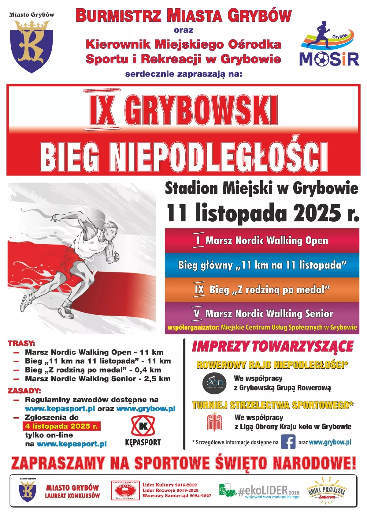 ,,IX Grybowski Bieg Niepodległości”, w tym konkurencje: