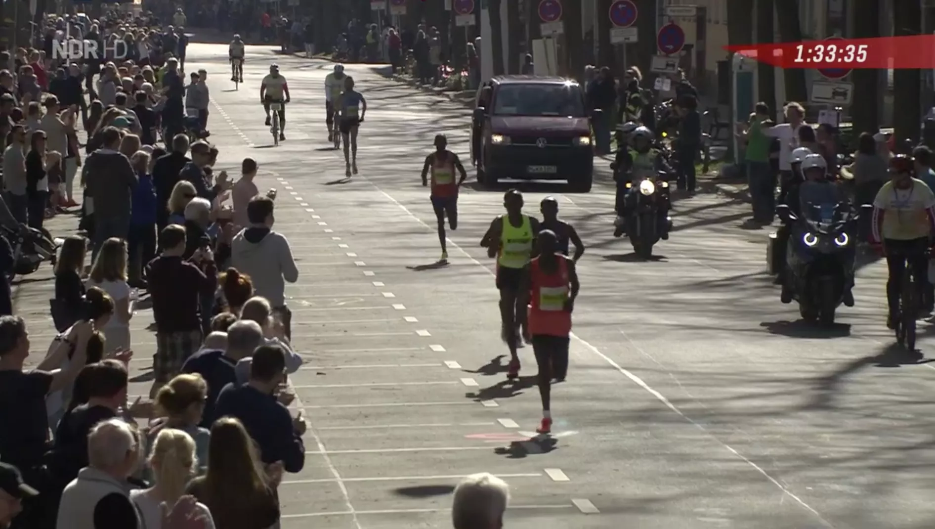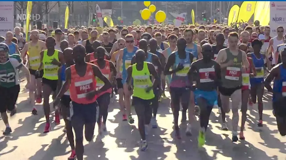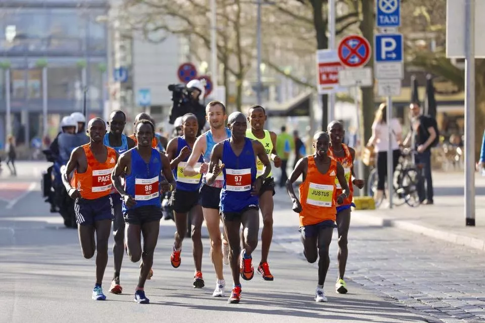 Od początku bieg toczony był w wysokim tempie. W czołówce plasowali się wyłącznie zawodnicy z Afryki, oraz nasz rodzynek. Sylwetką wyróżniał się w tłumie rywali.