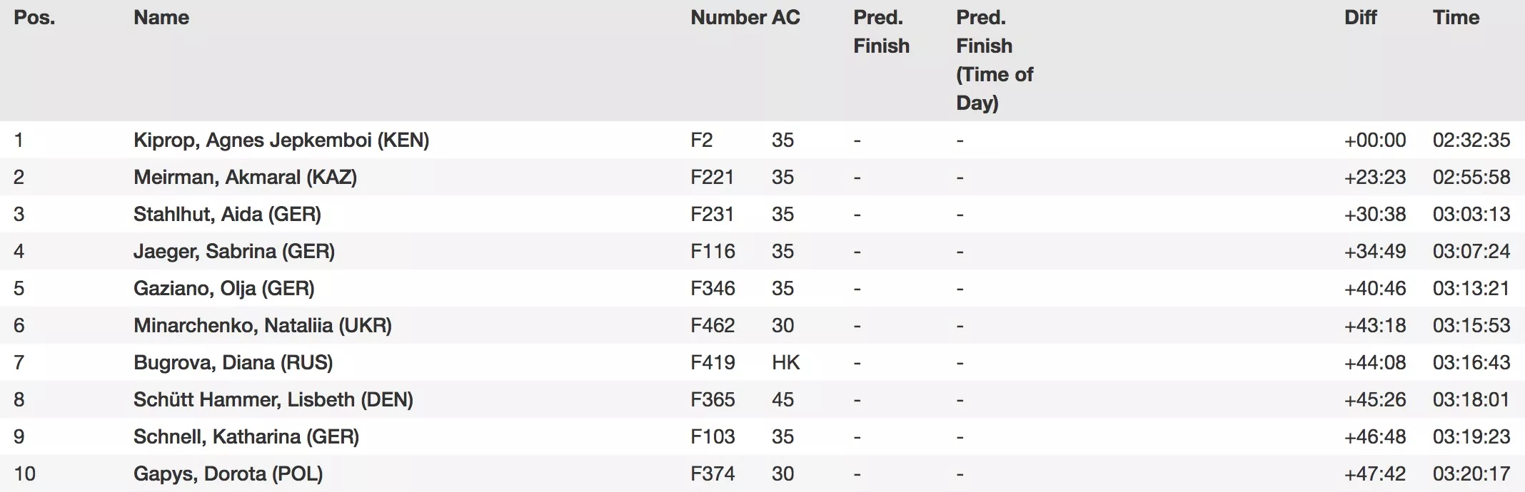 Z wysokiego miejsca może cieszyć się wspomniany wcześniej Kazach Krassilov, który zajął szóste miejsce z wynikiem 2:24:24.