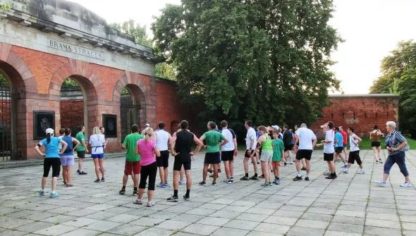 Irina i Andrzej Hulaniccy: Rozgrzewka ? wymachy nogami, kręcenie stopami. Po ćwiczeniach udajemy się na najdłuższy odcinek trasy, z najdłuższym podbiegiem pod Cytadelę. Docieramy pod Bramę Straceń.