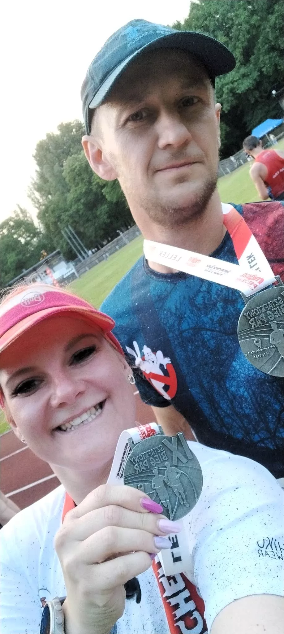 Więc w sumie pierwsza połowa zeszła mi na licytacji w mojej głowie - nie chcę rozczarować ani siebie ani partnera ani trenera, chcę pokazać, że potrafię i tak nie potrafiłam wyluzować. Rafał dwie zmiany biegnie po 800m bo zwyczajnie nie daję rady. Dopiero w drugiej połowie zaczynam luzować głowę i patrzę na pozytywy- nie boli mnie kolano, w sumie tempo nie jest takie złe i zaczynam się dobrze tym bawić.