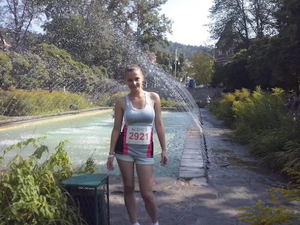 Mijam Fontannę, przy której w zeszłym roku zajadałyśmy się lodami czekając na biegaczy. Teraz postanawiam zrobić tam fotkę w stylu „Przed biegiem wygląda się tak” Na deptaku zorientowałam się, że nie mam kolczyków! Jak to?! Ja? Bez kolczyków?! Różowe kuleczki kupione i już w uszach. Idealnie. Można biec :)