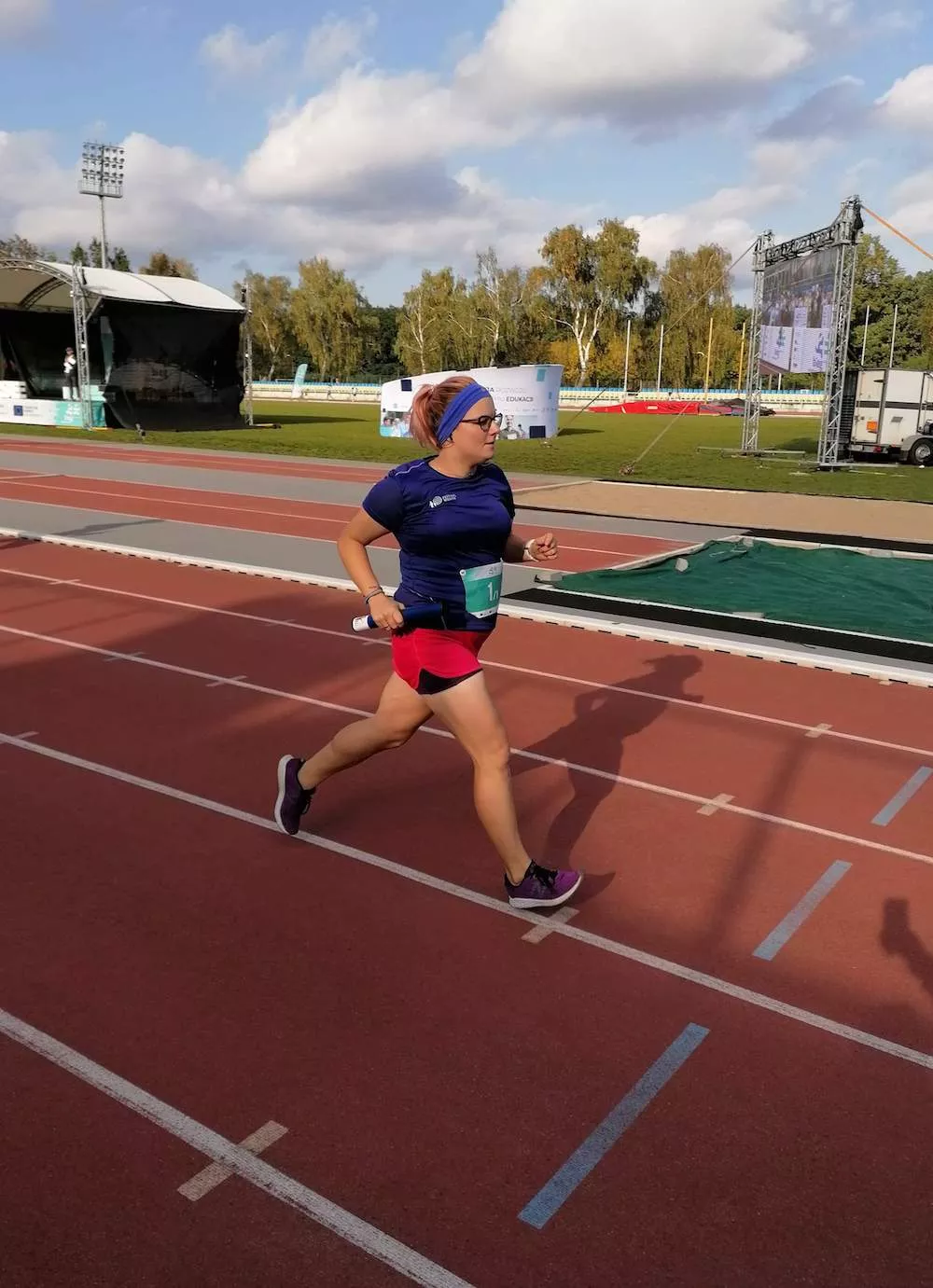 Punktualnie o 15:00 Filip wyruszył na pierwszą zmianę. Jednak jak to bywa, plany się zmieniają. Musieliśmy szybko wprowadzić zmiany w kolejności startów oraz liczby pokonywanych okrążeń. Tak więc Filip zrobił 800m następnie ja swoje 400 m. Jedną rundę biegał też Konrad. Ponieważ Natalia spóźniła się na bieżnię, na tartan znowu wskoczył Filip. Następnie ja, Konrad i w końcu Natalia.