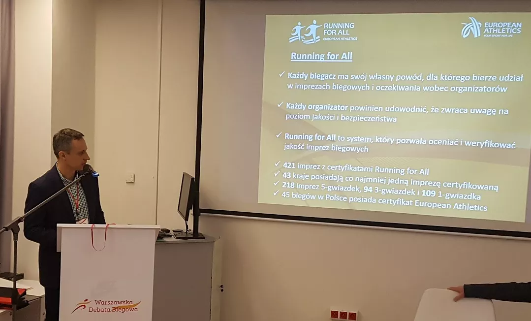 Dyrektor ds. międzynarodowych PZLA Piotr Długosielski, członek komisji biegów European Athletics, przedstawił kolejny, tym razem międzynarodowy, projekt certyfikacji biegów masowych. Praca nad nim trwa pod egidą założonego przez EA portalu Running For All, a ze stołecznych biegów jego kryteria spełniają na razie Maraton Warszawski, Orlen Warsaw Marathon, Półmaraton Praski, Irena Women’s Run i Biegnij Warszawo.