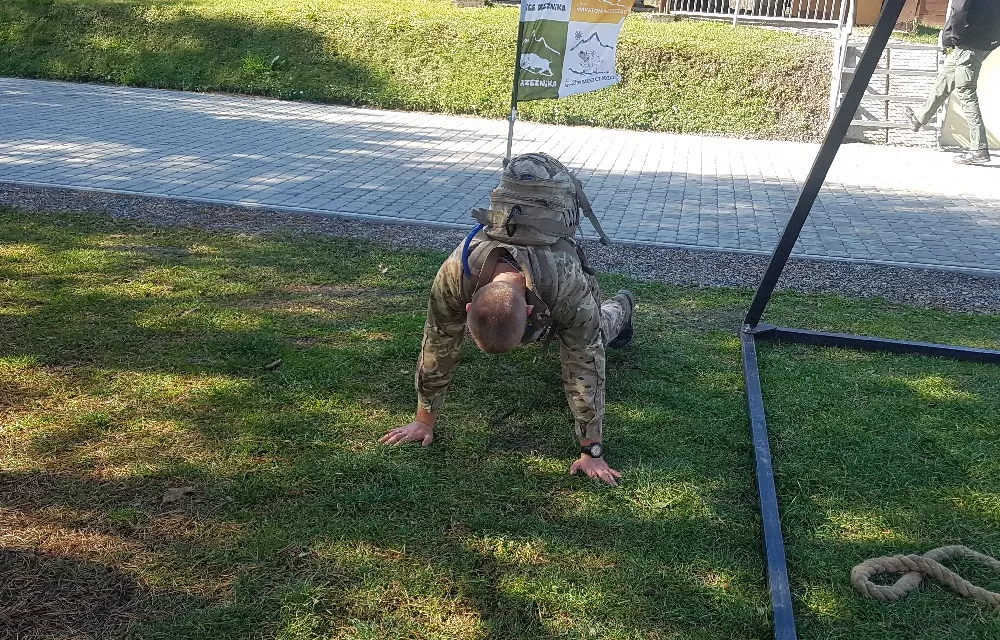 – Długo prowadziłem, ale w pewnym momencie kolega mnie dogonił i od tej pory nie ścigaliśmy się już, wbiegliśmy na metę ramię w ramię, prawie że za rączkę – powiedział nam zwycięzca. – Gdyby nie on, w pewnym momencie byłoby ze mną chyba kiepsko. Jak z oddali usłyszałem strzały ze strzelnicy byłem wniebowzięty, bo wiedziałem, że meta jest tuż, tuż. Zostało jeszcze tylko przeczołgać się pod zasiekami, postrzelać oraz kilka metrów przed końcem biegu wspiąć się na linę i dotknąć zawieszonego dzwonka.
