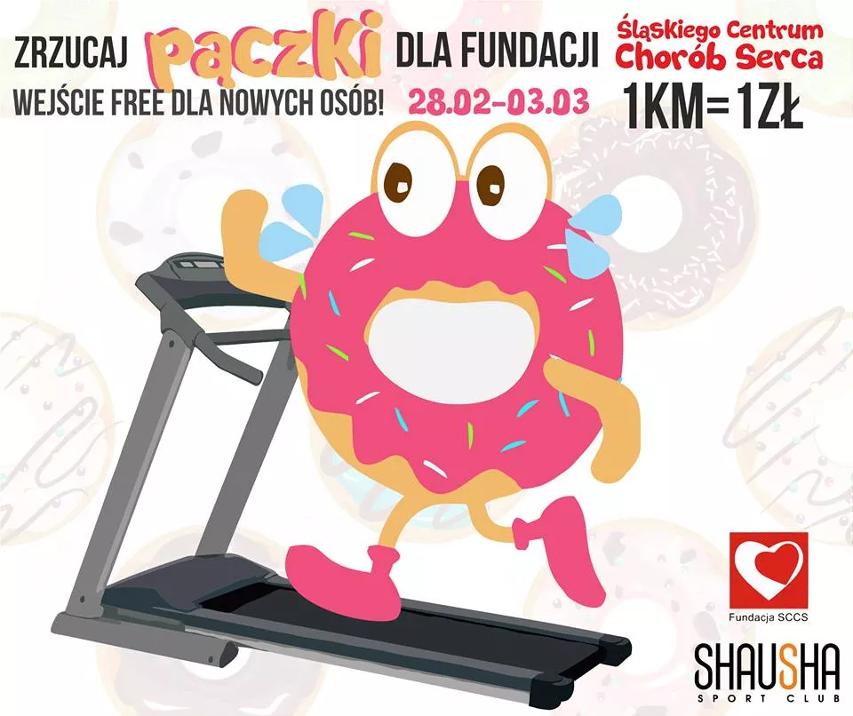Zjadasz pączka, bo w Tłusty Czwartek wypada a potem masz wyrzuty sumienia? Na Śląsku znaleźli sposób na to, by ani jedna kaloria się nie zmarnowała. Co więcej, można je zamienić na realną pomoc! W klubie sportowym Shausha koło Gliwic trwa nietypowa akcja „Zrzucaj pączki dla Fundacji Śląskiego Centrum Chorób Serca w Zabrzu”. Dzięki temu każdy może zamienić kalorie na pokonane kilometry a te na złotówki dla fundacji. I to całkowicie bezpłatne!